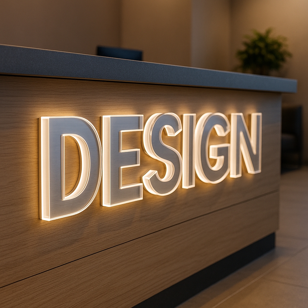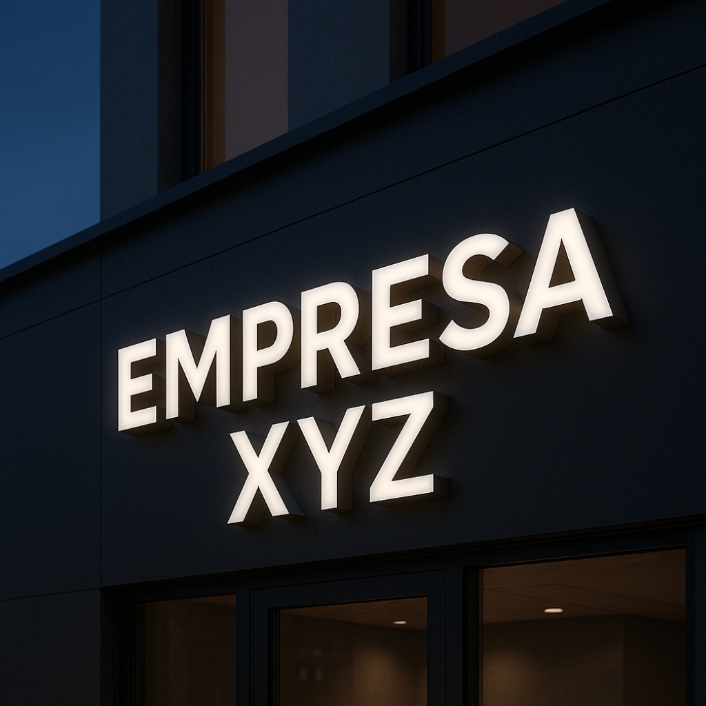Letras caixa em chapas metálicas ou acrílicas, com opção de iluminação frontal ou pin-up. Design imponente que destaca a marca mesmo à noite. Montagem segura e acabamento impecável, para fachadas, recepções e painéis institucionais.
